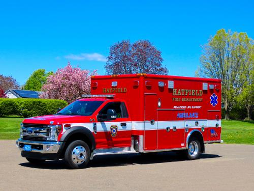 Hatfield Ambulance is a part of Hatfield Fire Department's EMS division. This rig is outfitted as an ALS - Paramedic level ambulance. This vehicle is equipped with a power load stetcher and state of the art medical equipment providing high quality advance life support care to our residents and surrounding communities.